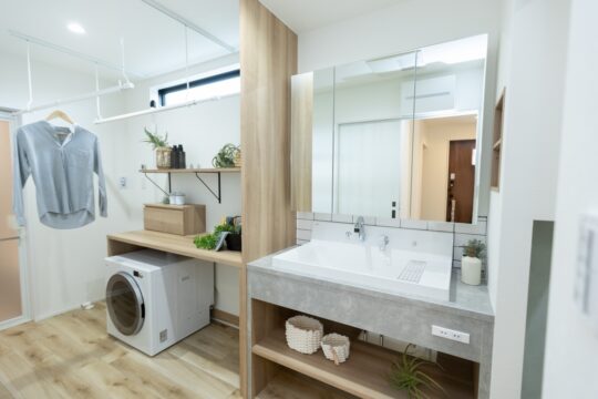 こちらのお家では、洗面スペースとランドリールームを一体に計画しました。