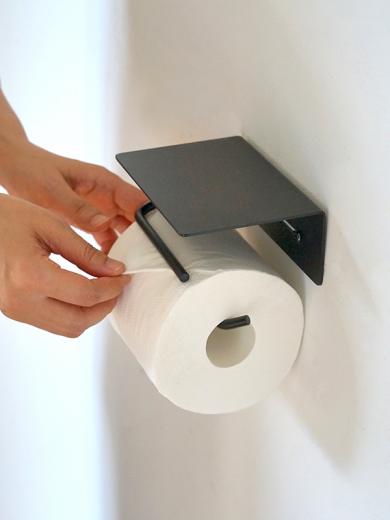 ▲シングルタイプもあります。バー状の紙押さえがあるためペーパーが切りやすく、高齢の方や小さいお子様でも使いやすい仕様となっています。上部には棚も付いているため、携帯などを一時置きするのに便利に使用できます。