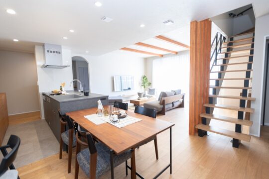 スケルトン階段を降りると目の前に使い勝手の良いキッチンダイニング!