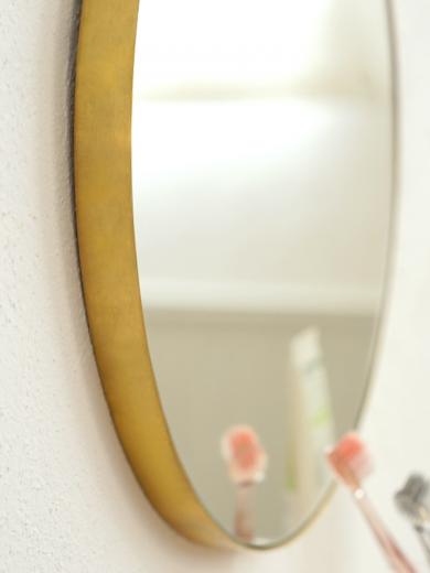 ▲『Brass round mirror320』は直径約32cmの丸型ミラー。ミドルサイズながら顔回りがしっかりと写りこむため玄関、洗面所、お手洗いなどにおすすめです。