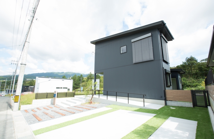わんちゃんやお子様が遊ぶ中庭のあるエクステリアです。アプローチ部分は階段とスロープを組み合わせました。スロープ部分の手すりも外観とあうように少しシャープなデザインの手すりを採用しました!表札や外部水栓・ポストなどもこだわって選んでくださったのでとても素敵な仕上がりになっています。忙しいご夫婦がラクに綺麗を維持できる外構計画にこだわってご提案しました。お休みの日は、中庭での家時間を存分に楽しんでくださいね♫