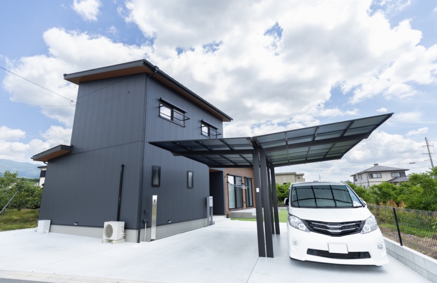 カーポート屋根はY合掌という柱が中心にくるタイプのカーポートを採用しました。4隅にカーポートの柱がくるものと比べて、ドアの開け閉めや、お子様の乗り降りにも便利です。