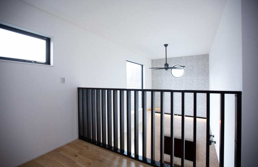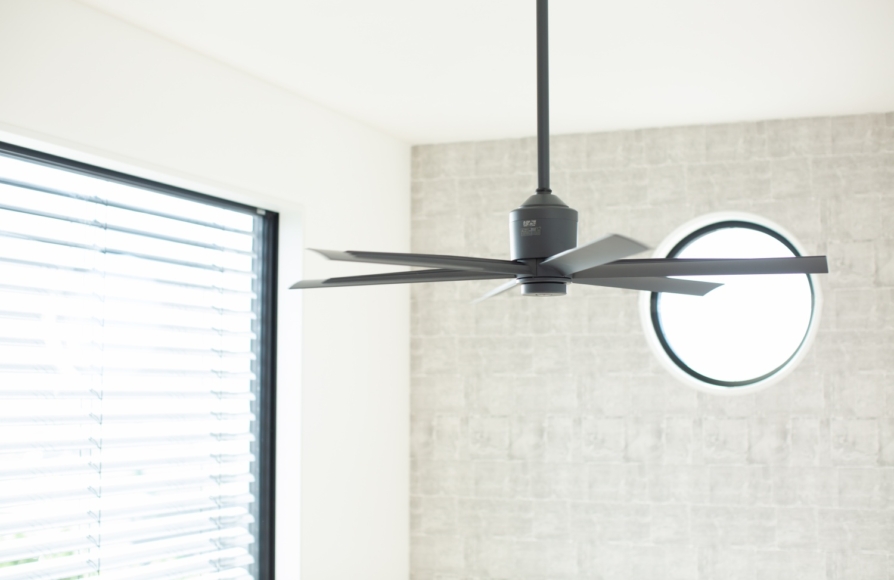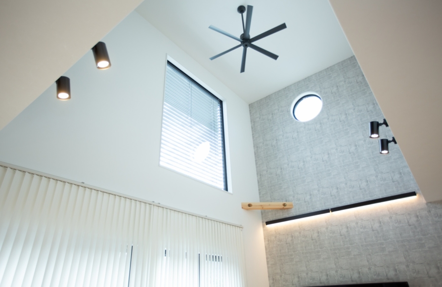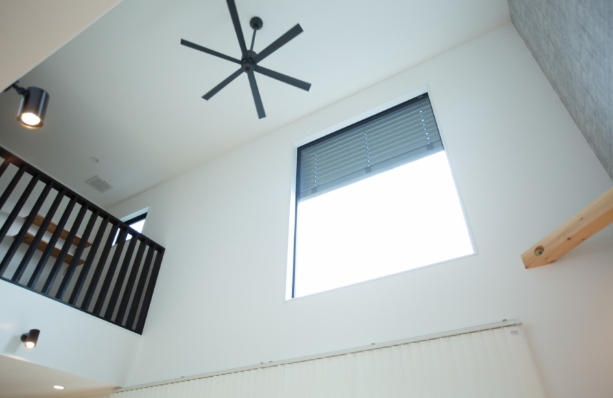 きちんと断熱性能にこだわり、日当たりシミュレーションをしながら日照計画にもこだわった家では、部屋間の温度差や上下の温度差がとても少ないです。このような大きい吹抜けをとっても快適さや光熱費の心配もないのが嬉しいですね。 吹抜けの天井につけているシーリングファンを上手く使いながら、季節に応じて羽の回転方向を変えることでより快適にお過ごし頂けます。吹抜け部分の大きな窓には外付けブラインドのヴァレーマを設置。夏などの暑い時期はヴァレーマをおろして、窓の外側で日差しをカットしてあげるとより快適にお過ごし頂けます。冬はもちろん吹抜けの窓がストーブ代わり。心地よくて光熱費0円の太陽を上手く使っていきましょう♬