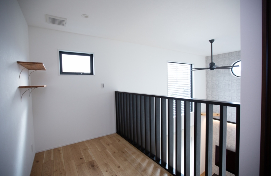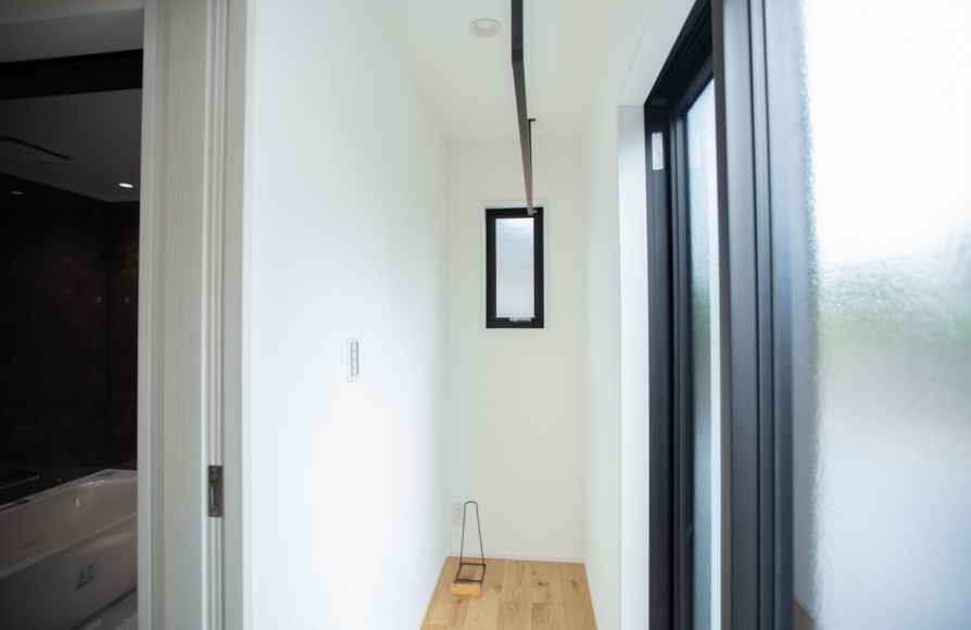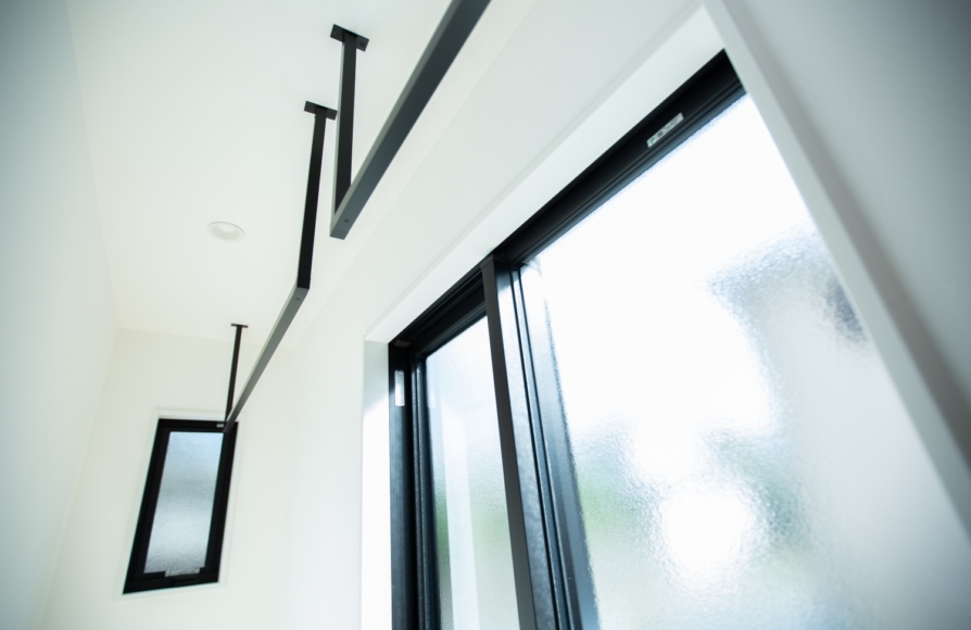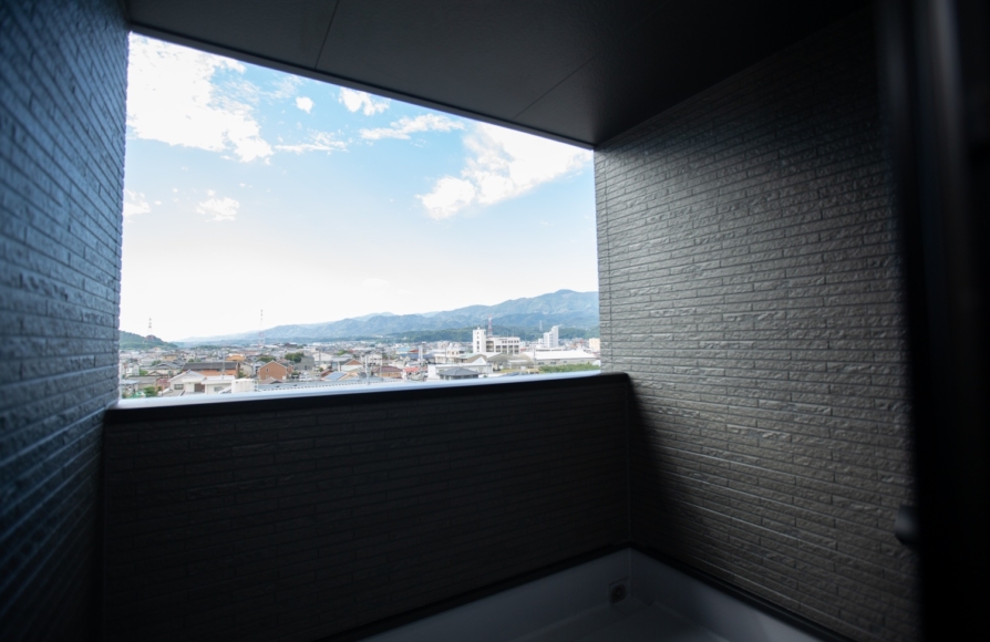 洗濯動線は1階で完結しているので、洗濯物のためのベランダやバルコニーは必要なかったのですが、今回西側に見える景観を楽しむために主寝室と繋がるインナーバルコニーをつくりました。インナーバルコニーはしっかりと屋根がかかっているので、夏の西日もしっかりとカットしてくれる設計にしました。