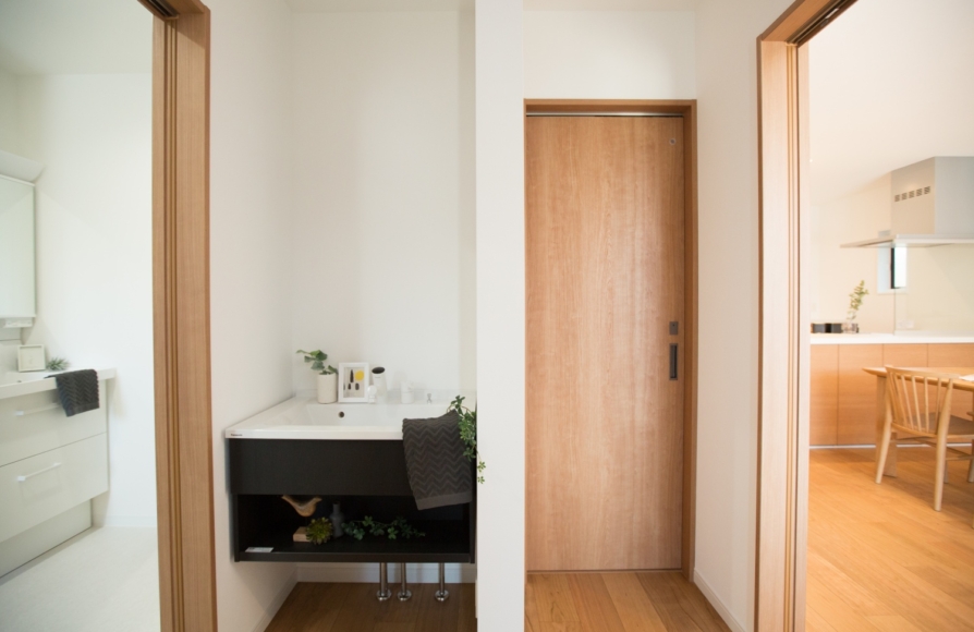 シンプルで飽きのこない暮らしとインテリアにこだわって家づくりを進めていきました。共働きのご夫婦が少しでも家事をラクにこなせるように、洗濯動線や収納計画を細かく打合せしてきました。適材適所に必要な奥行を確保した収納計画が片付けやすいお家をつくる秘訣です。