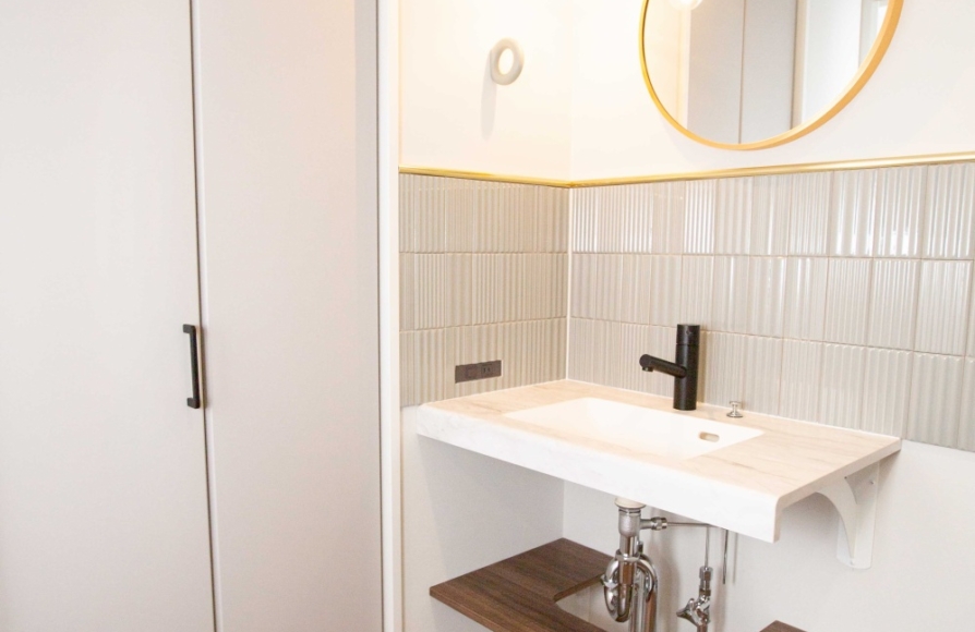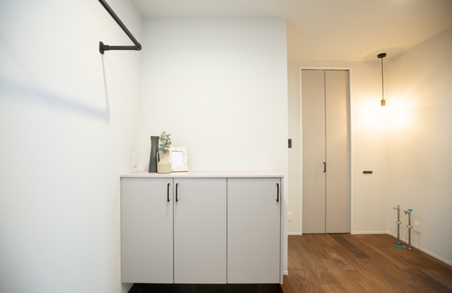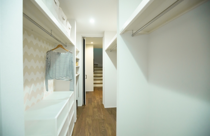 収納計画にもこだわり、お手持ちの荷物と照らし合わせながら収納場所を決めていきました。大きく収納をとるのではなく収納スペースにあわせた適材適所の奥行がポイントです。