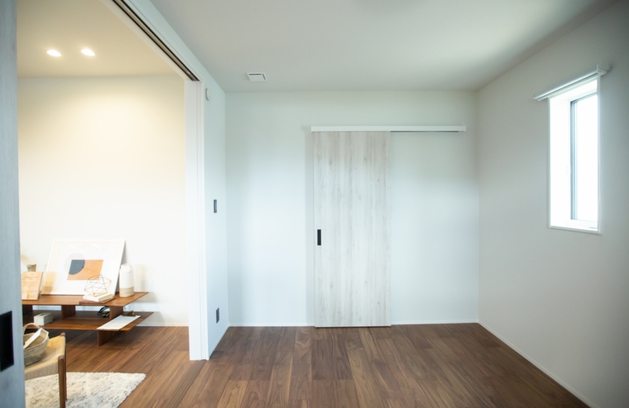2階建てですが、6帖の寝室を1階につくって将来は平屋暮らしができるようにしています。お子様の誕生やご家族のライフスタイルの変化にあわせて、1階の寝室をお子様が遊ぶスペースにしたり、お昼寝スペースにしたり臨機黄変に対応できるような間取りです。