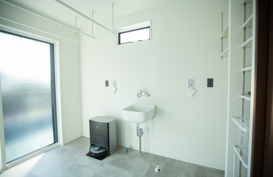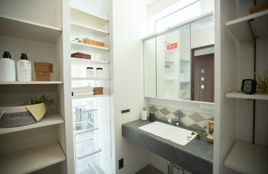 将来大型犬と暮らすことを想定して間取りを考えました。わんちゃんと人の共有スペースと人だけのスペースをしっかりと分けて設計していきました。玄関からリビングに入る動線と玄関からすぐにキッチンにいける2つの動線を確保するなど使い勝手にとことんこだわりました。各お部屋にテーマカラーをつくって、アクセントクロスやタイルなど、1つ1つのアイテムを選んでいってくれました。どのお部屋もお施主様のこだわりが感じられる空間になっています。共働きで家事も育児も忙しいご夫婦だからこそ、毎日の家事がラクになるように、大きなサンルームをつくったり収納計画にもとことんこだわりました。こだわり抜いたお家だからこそ愛着をもって、子育てを楽しみながら最高の家時間を過ごしてもらいたいです。