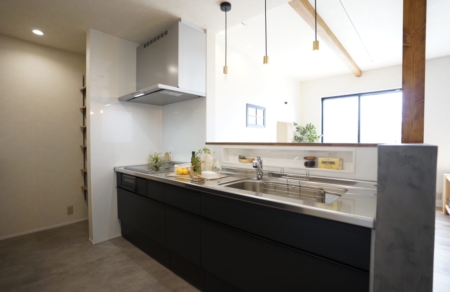 キッチン腰壁はMPC仕上げ。カフェのようなダイニングキッチン