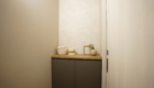 手元を隠せるキッチン腰壁をマイクロセメントMPC仕上げにしました。左官仕上げ特有の質感がとても素敵に仕上がっています。 おこもり空間にいくアーチ壁は、高さや形状にこだわってお施主様と相談しながら決めていきました。隣の室内窓と並んでとても可愛いです。