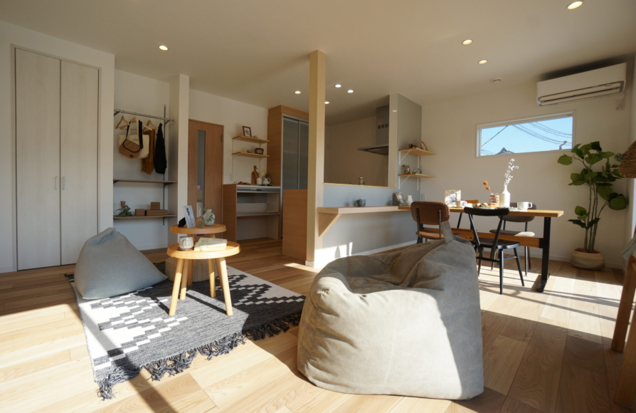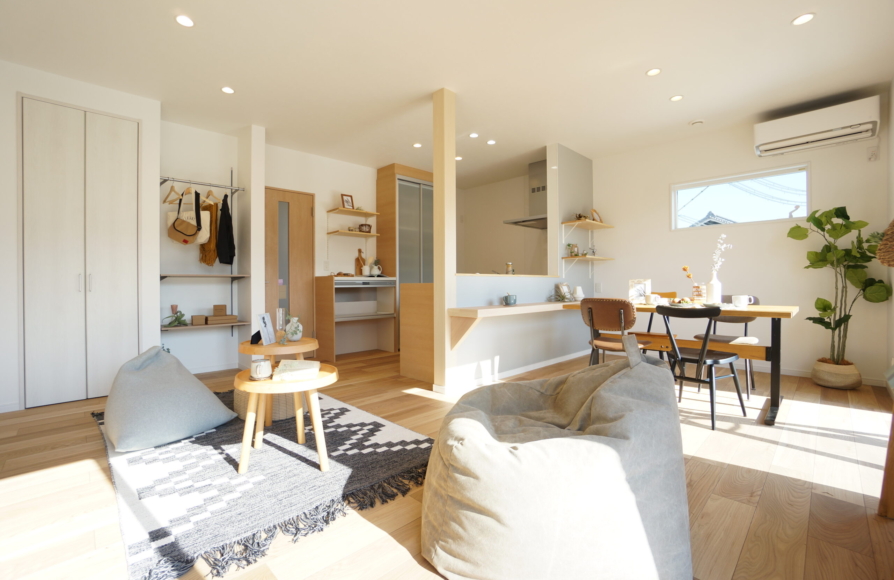 窓からこんなにしっかりと日差しが入ってくるとクッションに座ってうたた寝するのがとっても気持ちよさそう…。全館空調や床暖房など、設備に頼らなくても太陽や風など自然のエネルギーを上手く取り入れると、お財布にも地球にも優しい。そして何といっても心地よい。小さなエネルギーで快適に暮らすことがNext Design Homeのこだわりのお家づくりです。