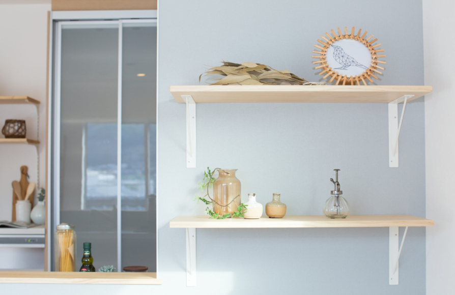 家族みんながよく見える位置に飾り棚を設置しました。一面アクセントクロスにすることで、ギャラリースペースのような雰囲気にすることができます!保育園でつくってきた作品を飾り棚に飾ってあげると子供たちもニコニコ。子供たちの成長を家族みんなで楽しみながら見守れる。そんな素敵なお家になりました!!