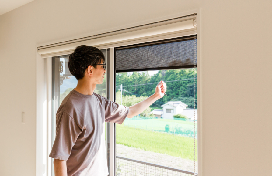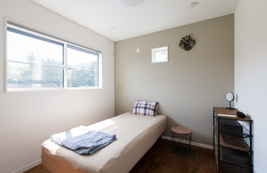 土地探しの段階から日照シミュレーションを行い、日差しが入るところに大きな窓を配置しました。この窓からの日差しで冬の晴れた日は暖房なしでも室温は20℃になります。心地良い太陽の日差しを浴びながら、家族で過ごす休日の家時間は最高ですね! このような大きな窓は、冬にストーブ代わりの暖房になりますが、逆に暑い夏は窓の外側で日差しをしっかりカットしなければなりません。なので、外付けのシェードも設計で計画し使い方やその必要性についてもレクチャーさせていただいています。ちなみに、お引渡しから1年後の実際の光熱費は、お安くなっているそうです!暑さ寒さのストレスなく快適に暮らせていると聞くことができ、シミュレーション通りだと当社のパッシ部長も一安心でした!